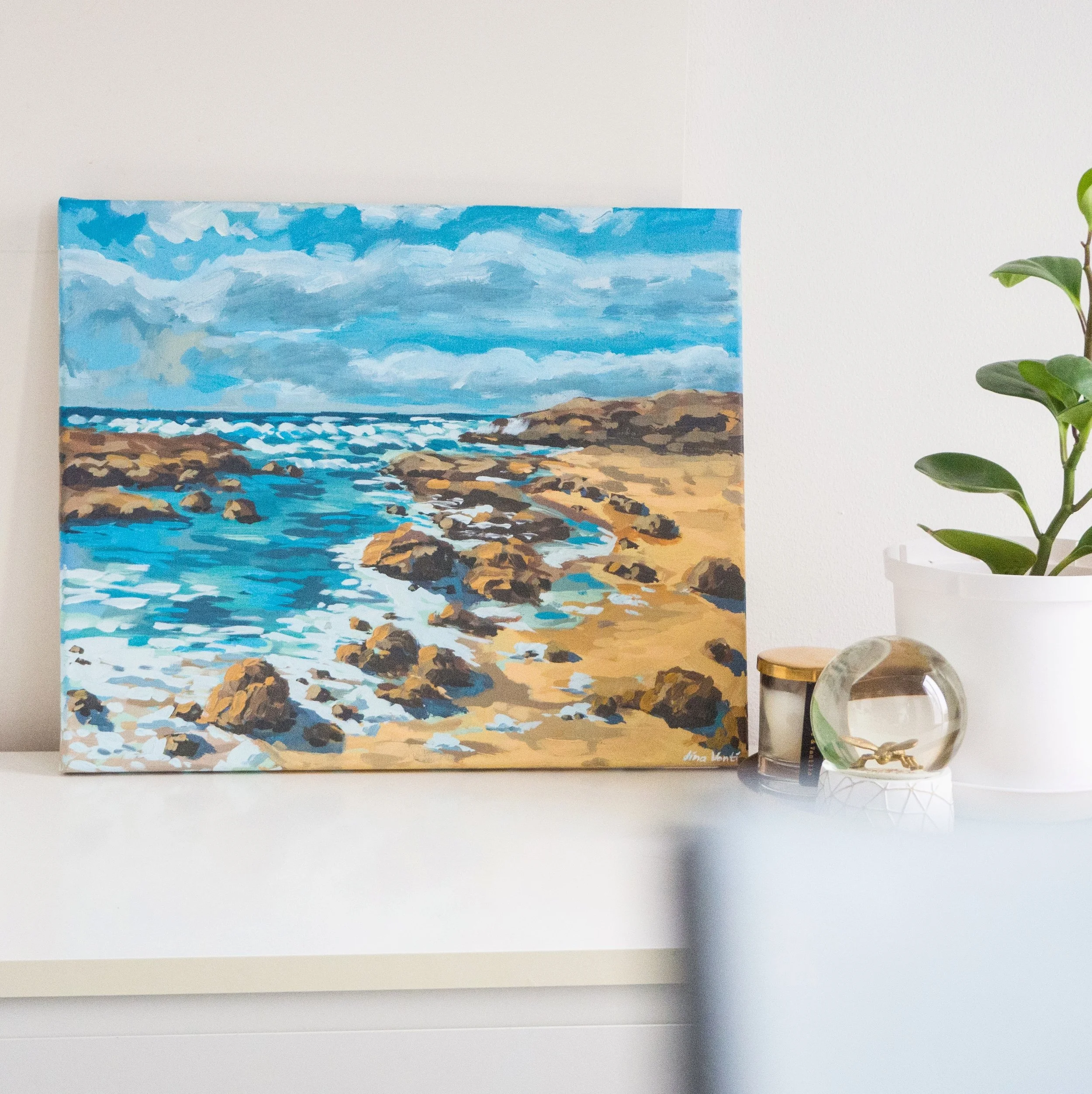 • there has to be a certain colour theme. Personally, I try to stick to white colour theme and stay away from other colours in my interiors. My art is colourful enough, so I like to keep it simple. You can choose your own color theme and work with it every time you take photos of art